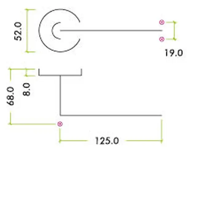 - Dimensions: 52mm x 8mm Push On Rose, Lever Length 122.5mm, Projection 67.5mm