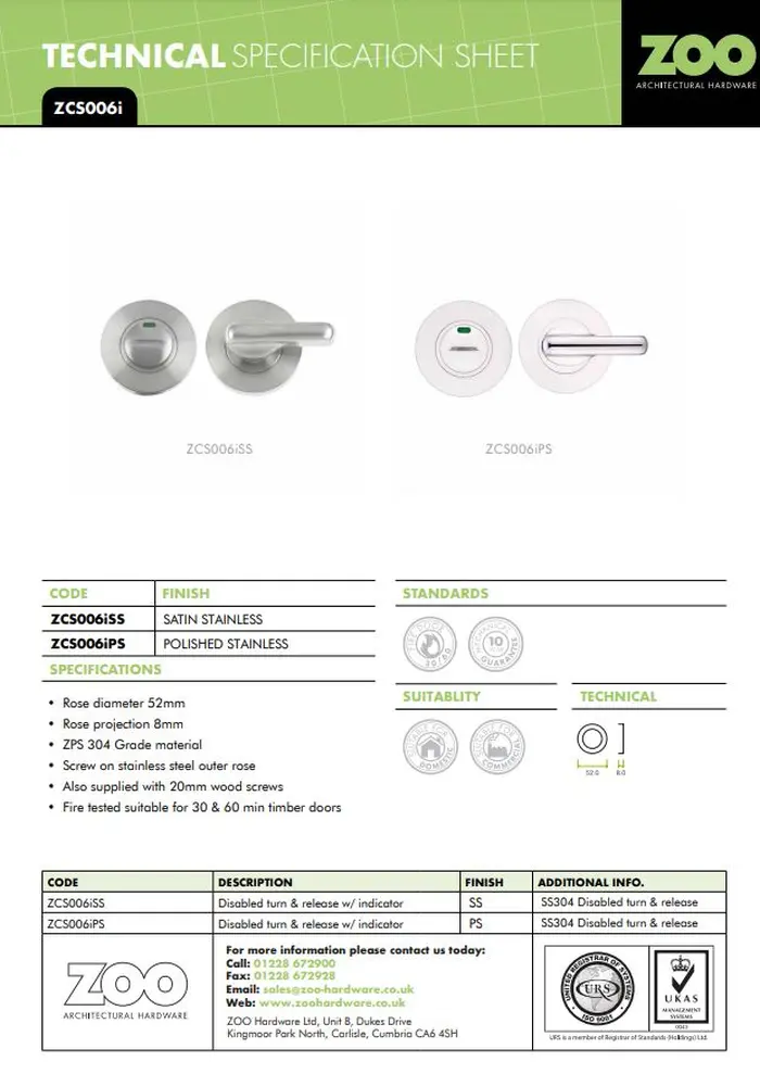 Be the first to review “Zoo Hardware Zgs Disabled Bathroom Turn & Release With Indicator, Polished Stainless Steel” Cancel reply