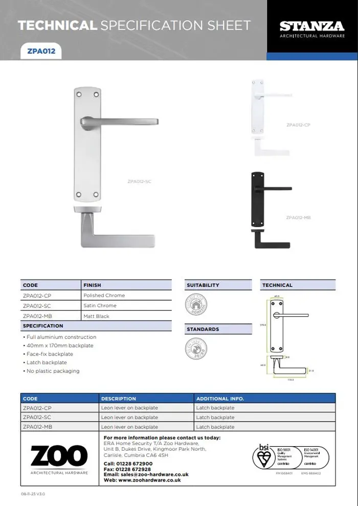 Be the first to review “Zoo Hardware ZPA012-SC Leon Door Handle on Latch Backplate Satin Chrome” Cancel reply