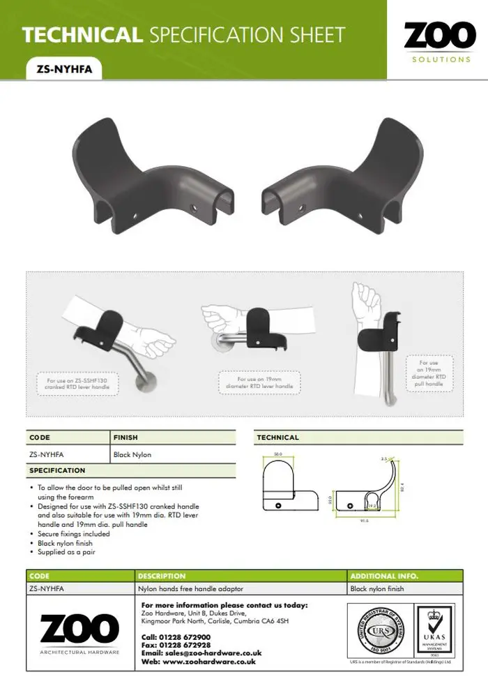 - Designed for use with ZS-SSHF130 cranked handle and also suitable for use with 19mm dia. RTD lever handle and 19mm dia. pull handle.