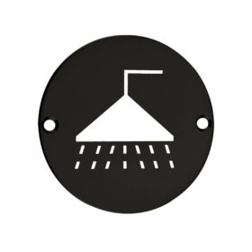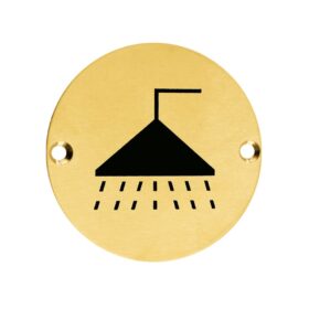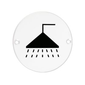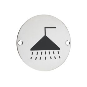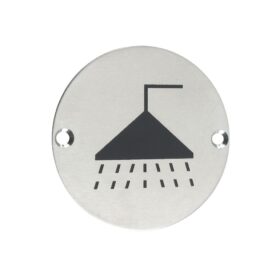 - The Zoo Hardware shower door symbol is available in polished or satin stainless steel or satin aluminium finishes, it has a 76mm diameter and two drilled countersunk holes on each side of the sign for quick and easy installation